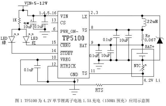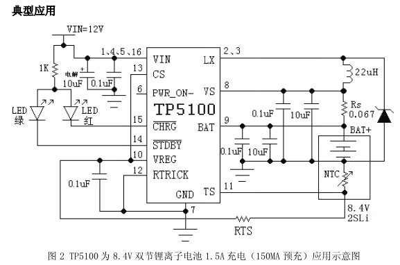 与简单的外围电路,使得TP5100非常适用于便携式设备的大电流充电管理应用。同时,TP5100