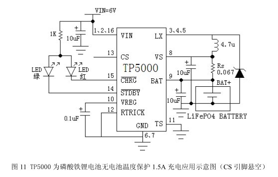 TP5000内置输入过流、欠压保护、芯片过温保护、短路保护、电池温度监控、电池反接保护。