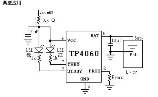 设置。当电池达到 4.2V 之后,充电电流降至设定值 1/10,TP4060 将自动终止充电。