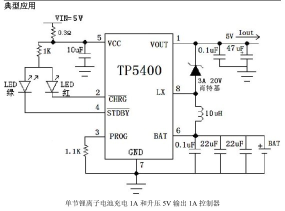 5V/1A。较高的集成度使得 TP5400 只需少量的外围器件即可正常工作。TP5400 还集成了